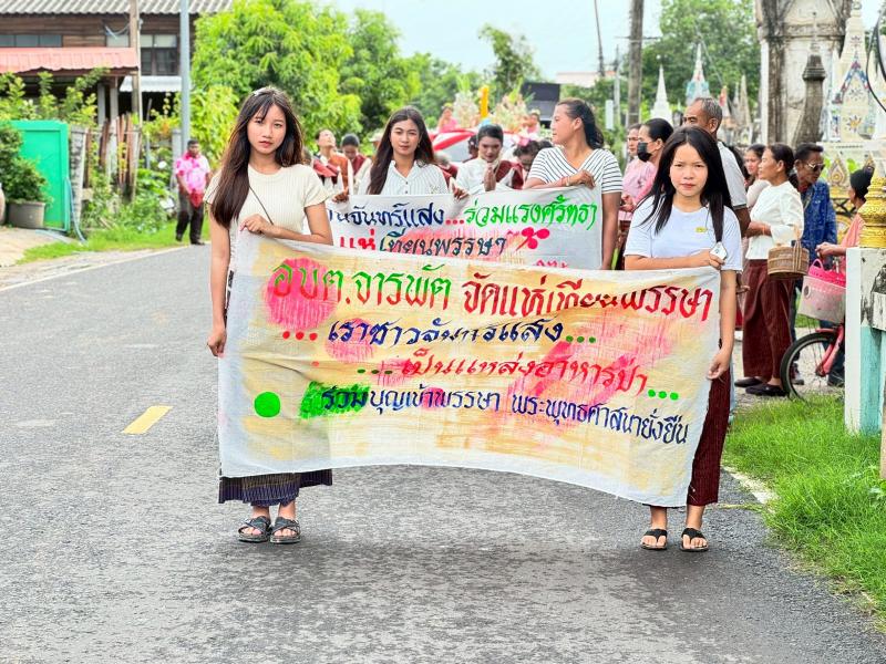 รายละเอียด : วันที่ 11 กรกฎาคม 2568 นายจิตรกร พรกวีรัตน์ นายกอบต.จารพัต เป็นประธานพิธีเปิดโครงการจัดงานประเพณีแห่เทียนเข้าพรรษา ประจำปี 2568 มีการประกวดขบวนแห่เทียนแต่ละคุ้มวัด เพื่อร่วมสืบสานประเพณีแห่เทียน และสร้างความรักสามัคคีในชุมชนตำบลจารพัต ขอบคุณทุกภาคส่วนที่มีส่วนช่วยให้งานสำเร็จลุล่วงด้วยดี