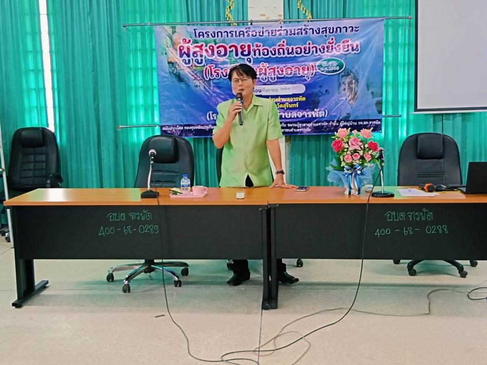 โครงการเครือข่ายร่วมสร้างสุขภาวะผู้สูงอายุท้องถิ่นอย่างยั่งยืน ประจำปีงบประมาณ พ.ศ.2568 (โรงเรียนผู้สูงอายุตำบลจารพัต) ณ หอประชุมองค์การบริหารส่วนตำบลจารพัต [25 กันยายน 2568]