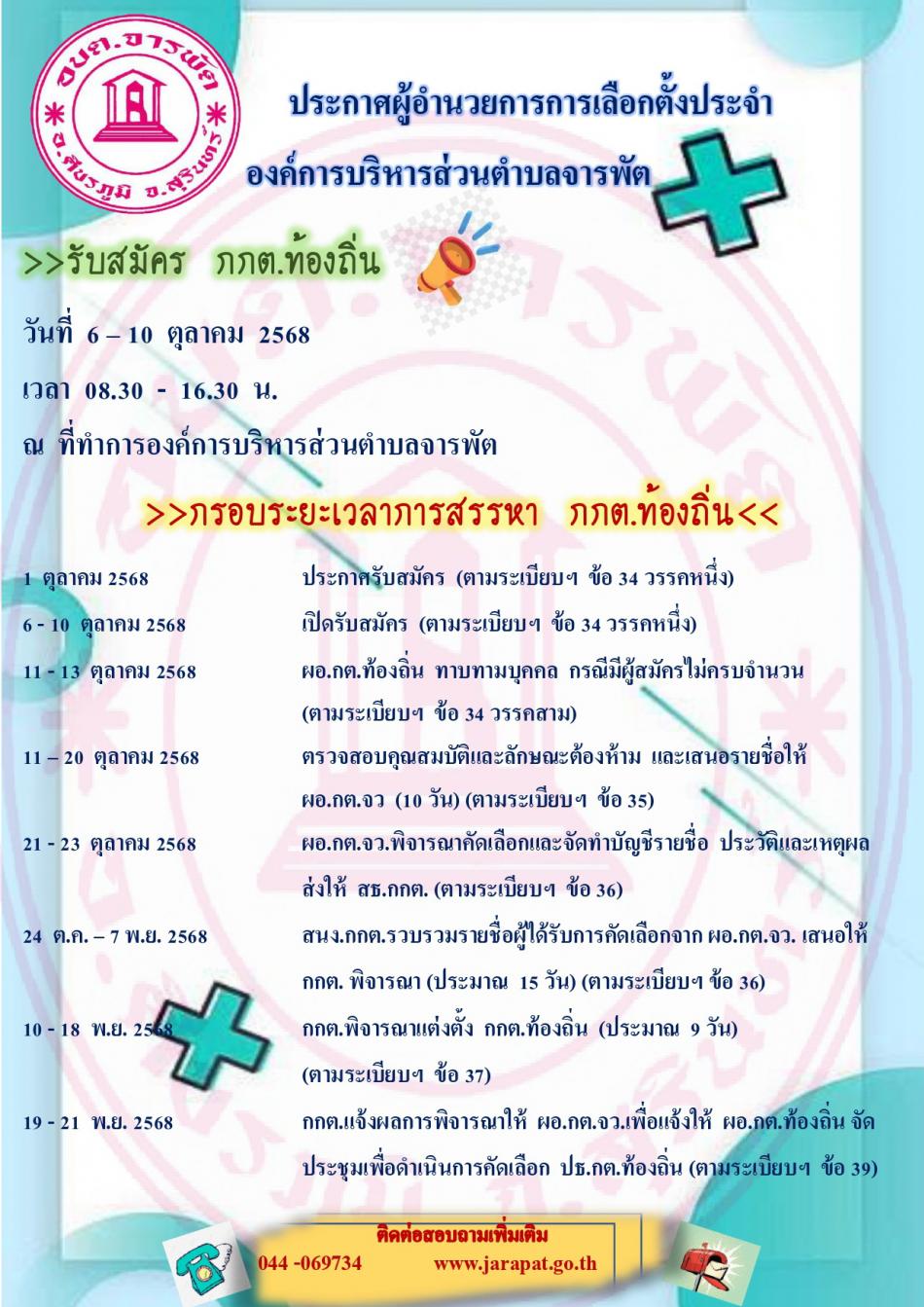 รับสมัครบุคคลเข้ารับการสรรหาเป็นคณะกรรมการการเลือกตั้งประจำองค์การบริหารส่วนตำบลจารพัต [1 ตุลาคม 2568]